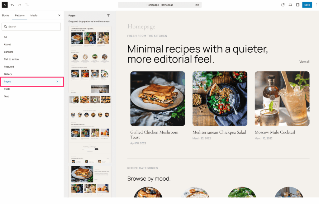 WordPress, blok düzenleyici etrafında gelişirken, Foodica’nın da bundan tamamen yararlanmasını istedik. Yeni Minimal demo tamamen bloklarla inşa edilmiştir. Sabit bir şablon ya da slider yok; bunun yerine, anasayfanızda bölümleri istediğiniz gibi düzenleyebileceğiniz sıradan bir sayfa bulunmaktadır. İster bir kahraman görüntüsüyle başlayın, ister seçilmiş bir tarif ızgarası ya da bir bülten kaydı ekleyin; blokları yerlerine sürükleyerek düzenlemek sizin elinizde.