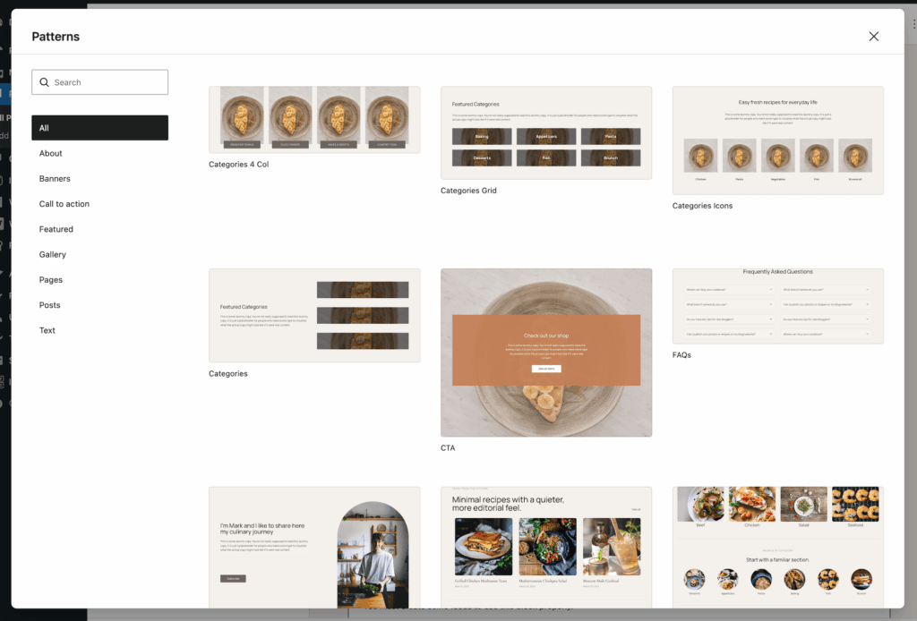 Anasayfa düzenlerinin yanı sıra, her türlü Foodica düzeniyle çalışan geniş bir kullanıma hazır blok deseni koleksiyonu ekledik: